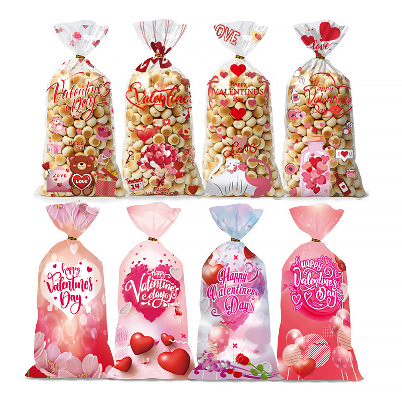 オリジナル四合一バレンタインデーキャンディー包装袋愛模様OPP透明平ポケットマシュマロ包装