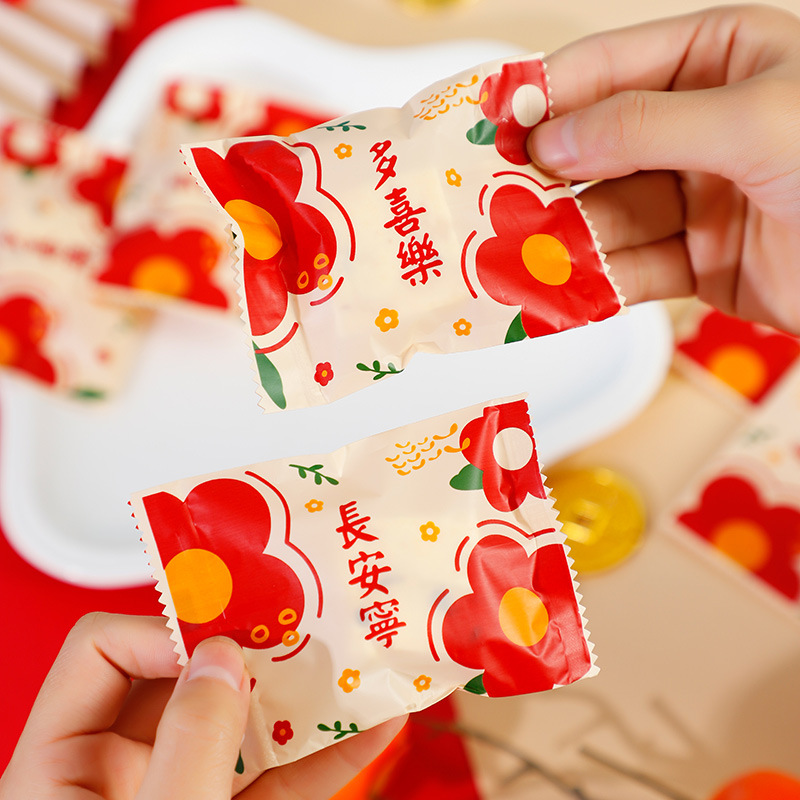 新しい雪花ショートニング包装袋中国風焙煎菓子餅乾燥機封袋透明おめでたい創意小食袋