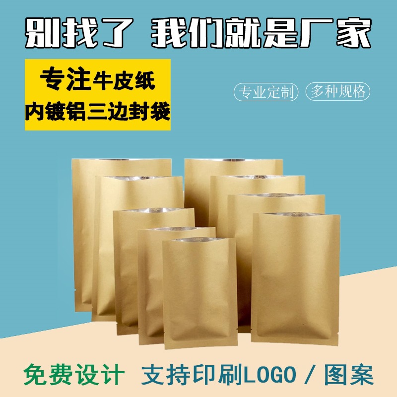 豊達達クラフト紙アルミメッキ三辺封袋茶葉遮光防湿密封袋食品ナッツ雑穀包装袋