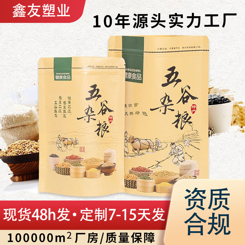 窓開けクラフト紙袋現物五穀雑穀包装袋雑穀通用包装袋自封粗食糧袋