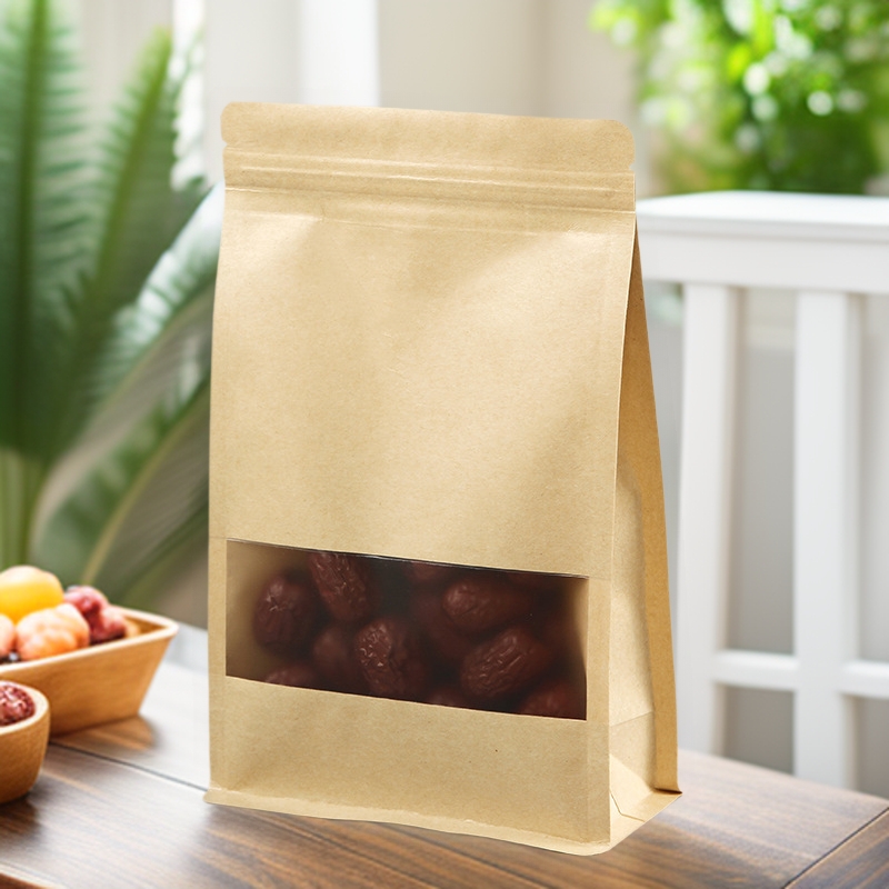 自立型自封窓クラフト紙袋食品茶葉封袋ドライフルーツ米密封スナック包装袋卸売り
