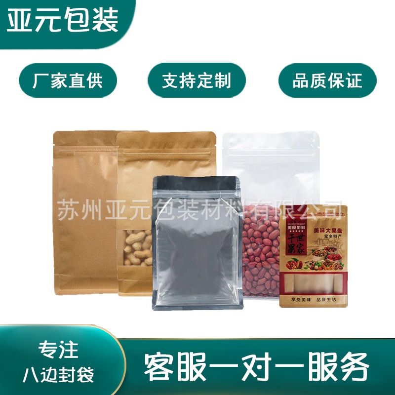 メーカー直供現物クラフト紙プラスチック八辺封袋ファスナー密封袋茶葉袋雑穀袋スナック袋その