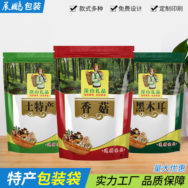 お土産包装袋牛皮紙袋シイタケ木耳乾果雑穀食品シイタケ密封袋自封袋