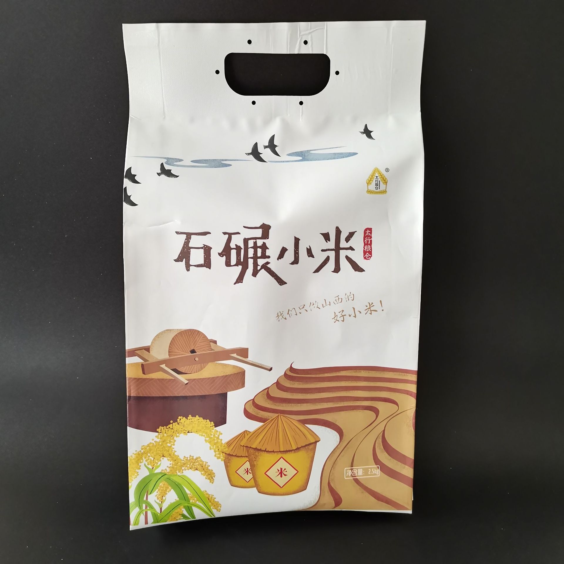 2.5kg手提げボタン付き小米袋防湿シール五穀雑穀アルミメッキ袋複合カラー印刷米ビニール袋