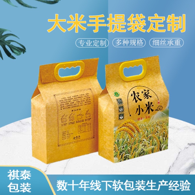 祺泰クラフト紙手提げ大米袋現物農家生態大米袋稲花香米富セレン米包装袋