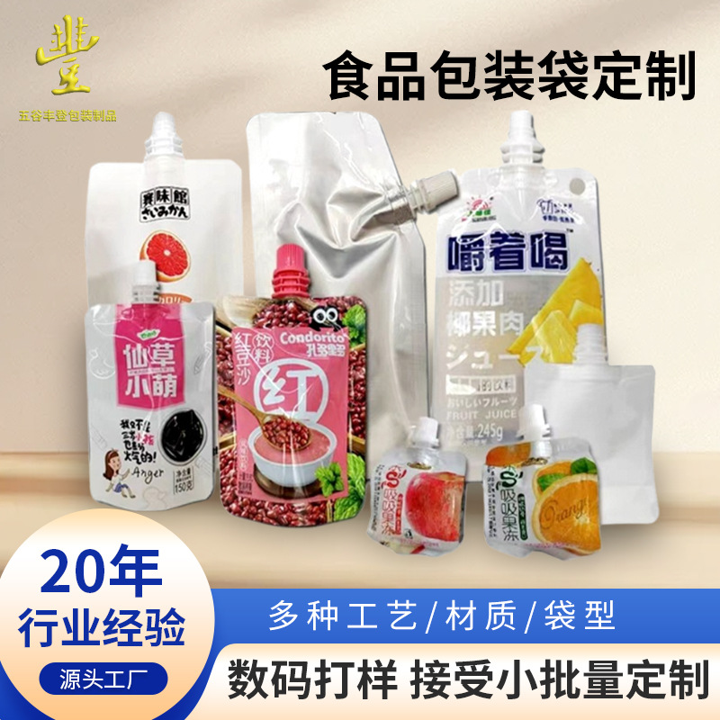 吸口袋使い捨て飲料袋漢方薬酸梅湯豆乳ビール袋透明自立吸口包装袋卸売り