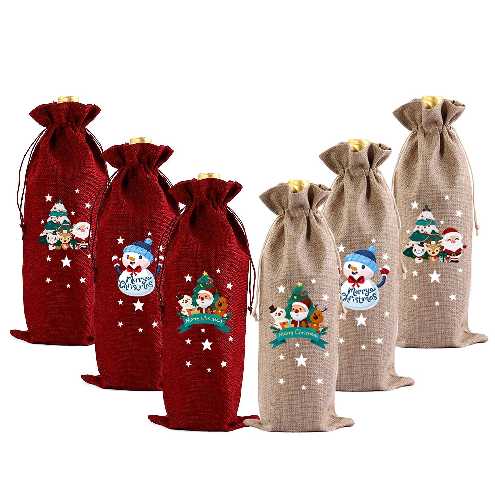 新しいクリスマスのクリスマスの古い熱いワインの瓶は麻布の包装袋の祝日の装飾袋のシャンパンのワインの袋をまねます。