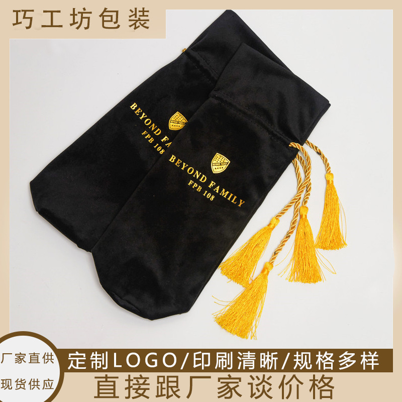 ネット赤の丸い底の口のワインの包装袋の黒色の長いぬいぐるみのフリンジロープはワインの綿毛の贈り物の袋を収納します。