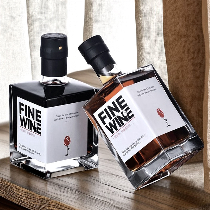 メーカーの生産卸売りの四角い洋酒瓶のワインボトルはワインの密封性が良いです。