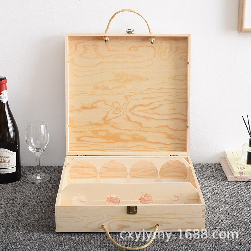 四本のワインの贈り物の包装箱の木製のワインの箱のアイデアの手提げの木製の包装箱の卸売り
