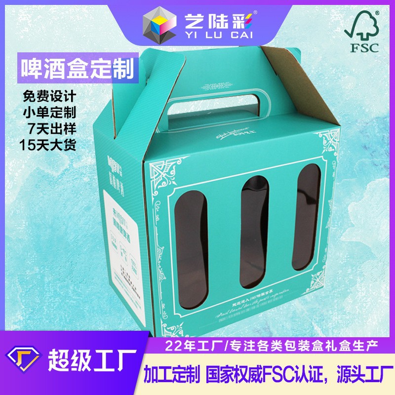 青島ビールボックスグリーンカスタムウィンドウ段ボール箱カスタマイズ可能なロゴプロセス6ボトルビールギフトボックス