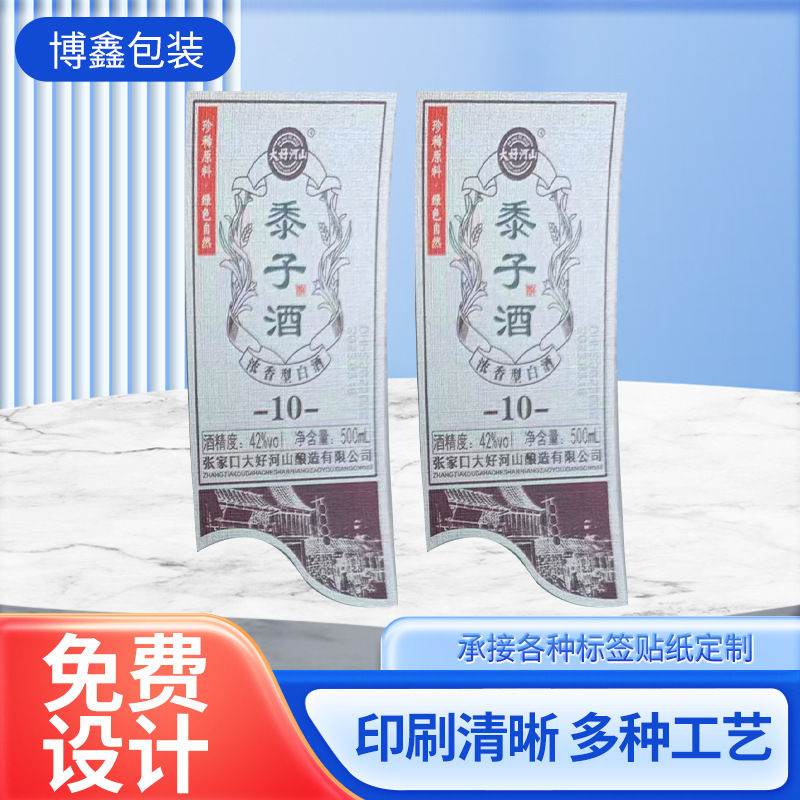 白酒ラベル両面白酒包装箱デザインロゴ印刷特殊紙布紋紙双透レーザー箔押し