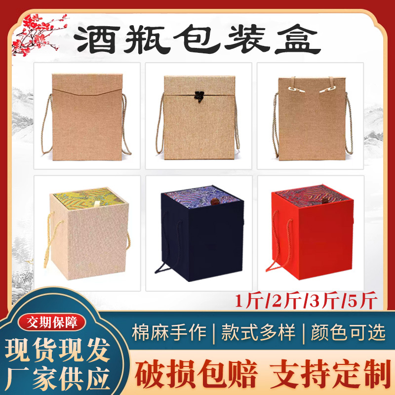 1斤2斤3斤5斤の麻布入りの酒箱と手持ちのひも付きの酒瓶の包装の小さい酒壇の空の包装の酒箱の卸売り
