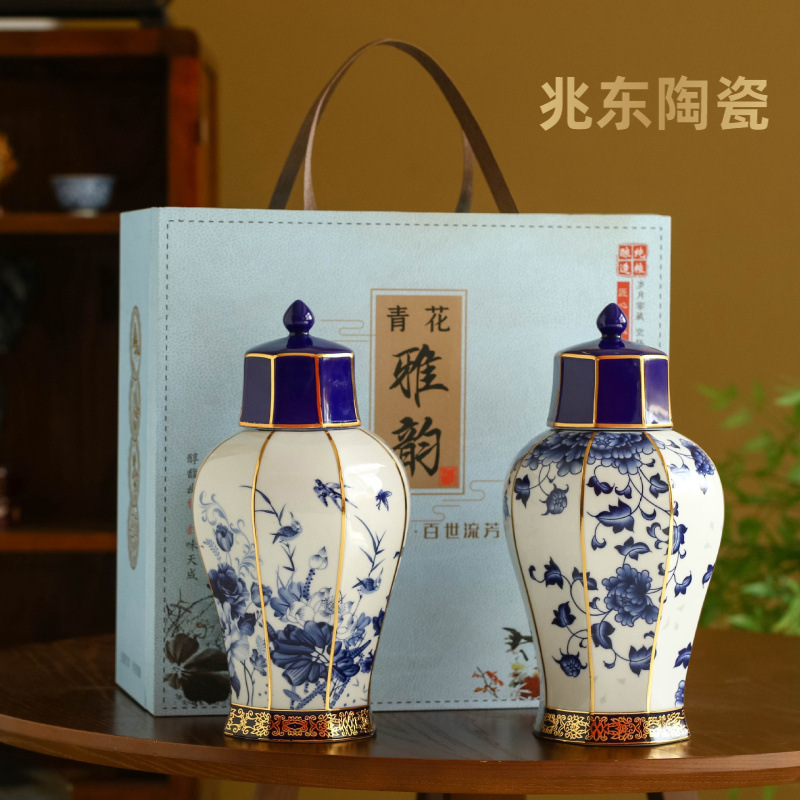 景徳鎮高温陶磁器酒壇1.5L青花雅韻釉薬上青花陶磁器酒瓶はカスタマイズをサポートしています。