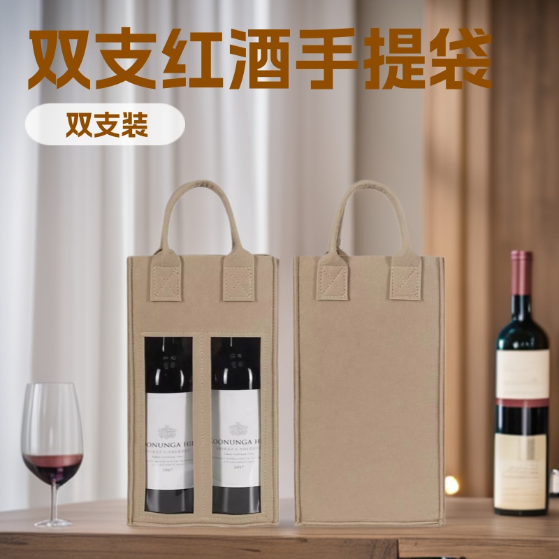 新しい2本のワインは礼袋を開けて窓を開けます。フェルト布のワインは透明な手提げ袋の長方形のプレゼント袋を持ちます。