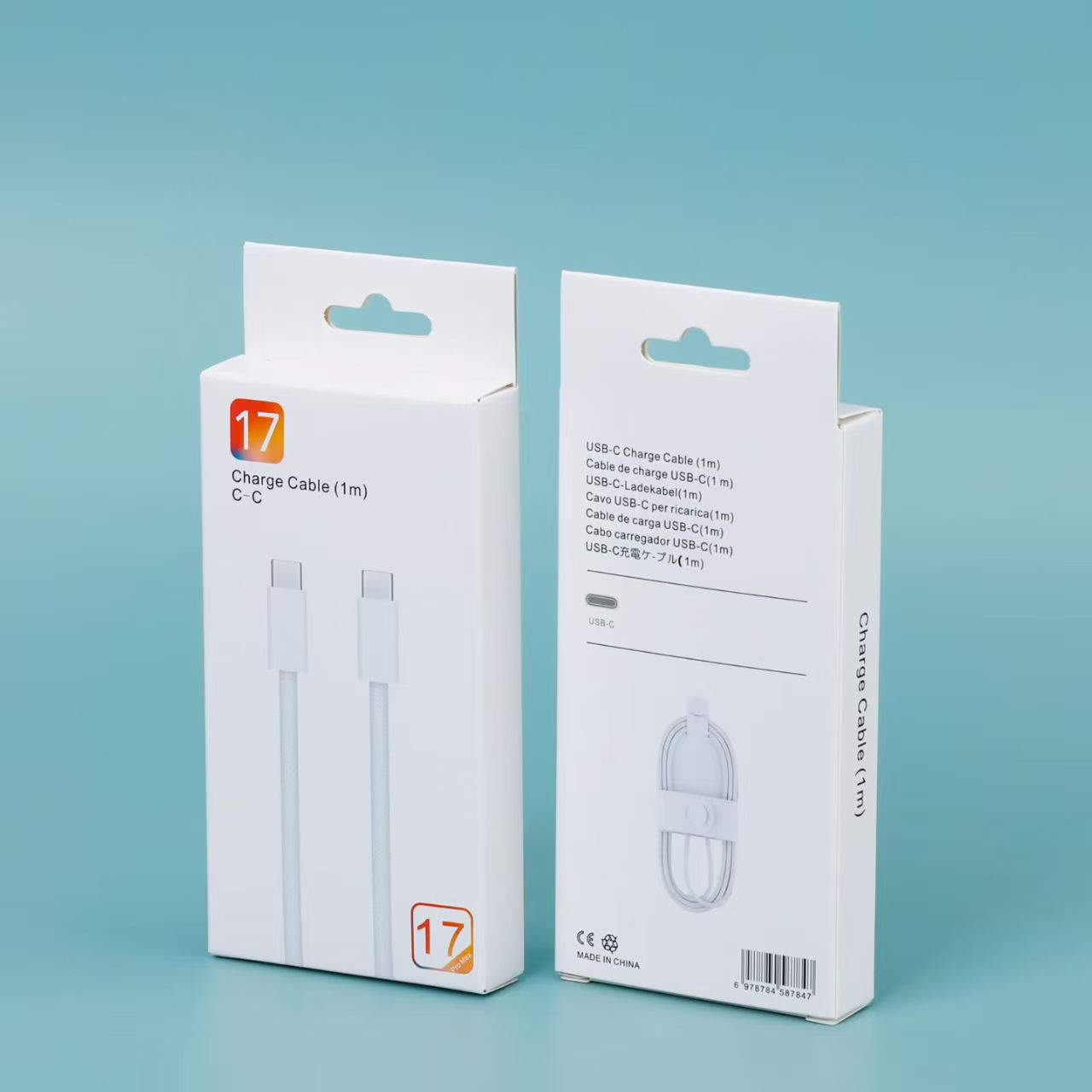 Apple c-cデータケーブル用、窓付き白色包装箱、充電ケーブル用ユニバーサル紙箱包装、在庫あり