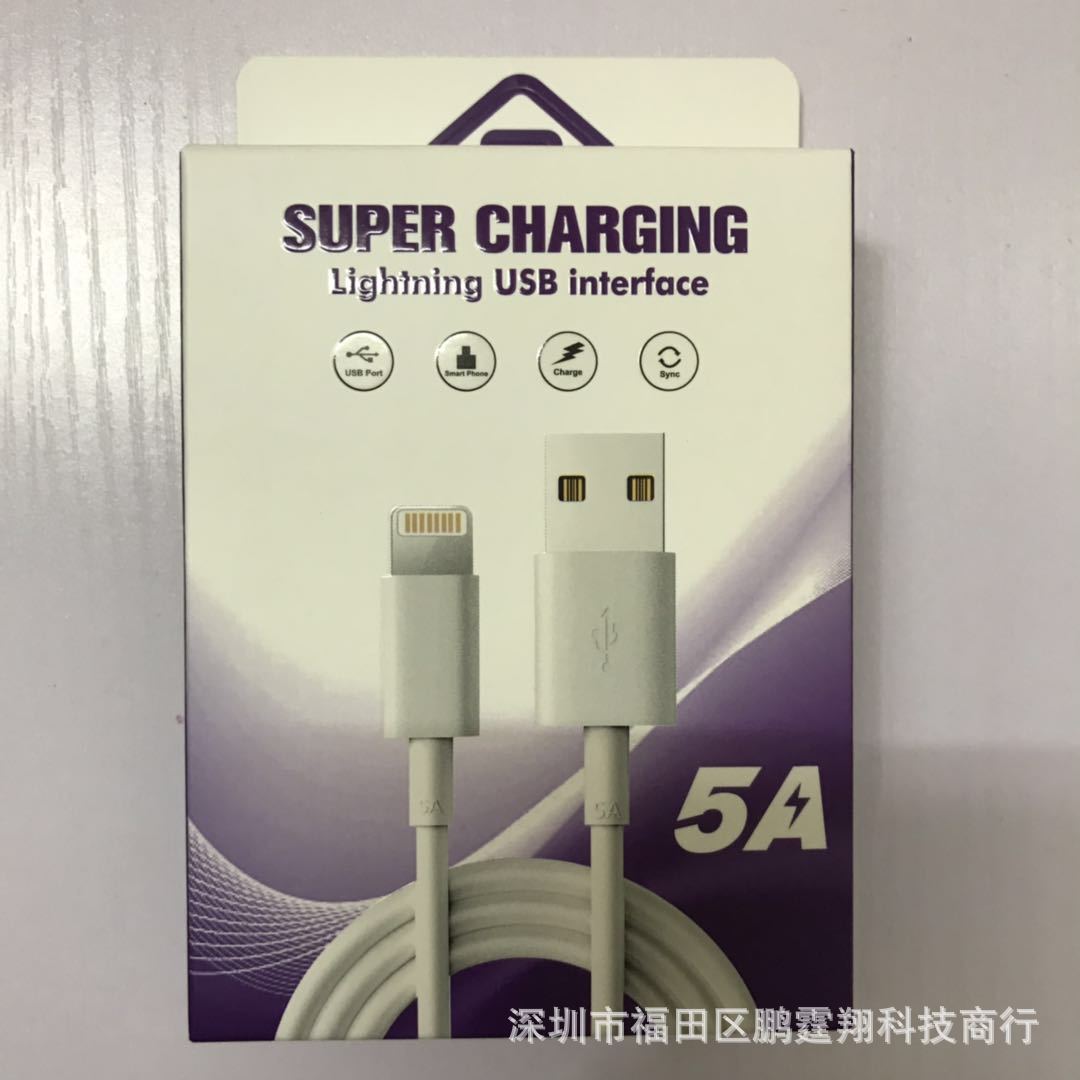 現物リンゴ5A急速充電データ線包装箱マットフィルムUVレーザー印刷リンゴ5A充電線カラーケース