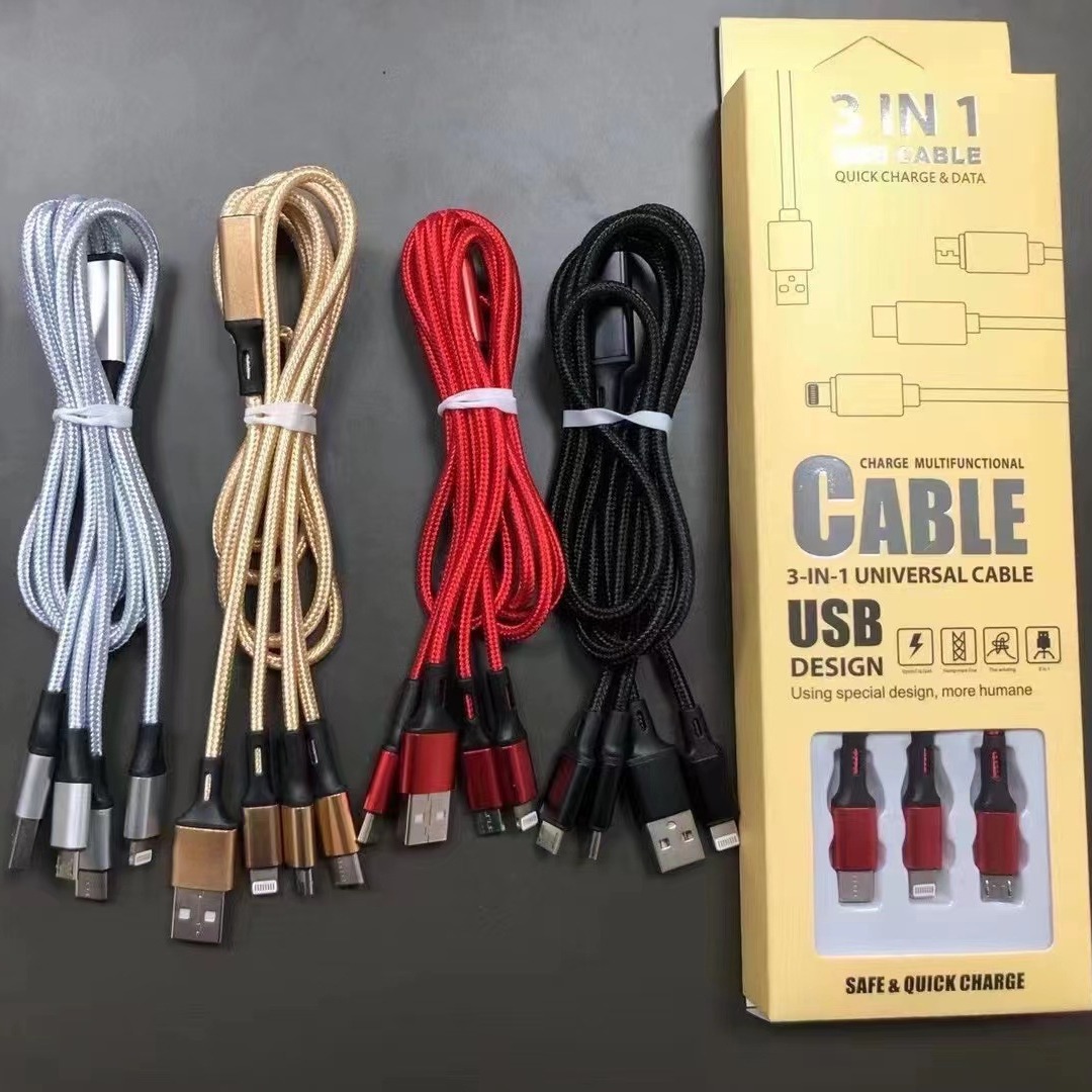 アップルアンドロイドtype-cナイロン編み線三合一充電線紙箱包装制定ロゴ内容サイズ