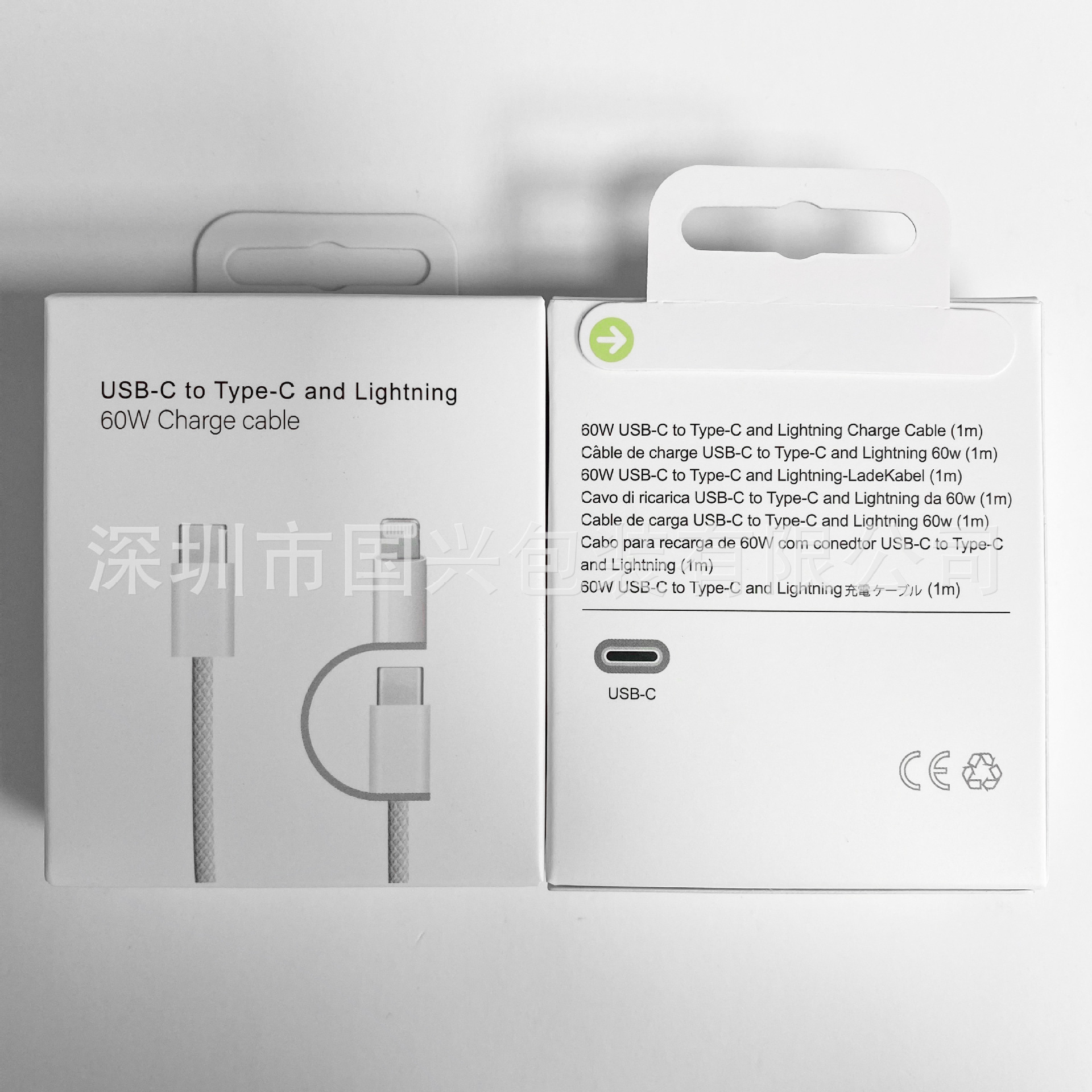 新しい 1mUSB-C 充電ケーブル包装小さな白いボックス iPhone15 に適したダブル C 編組ケーブル紙箱在庫あり