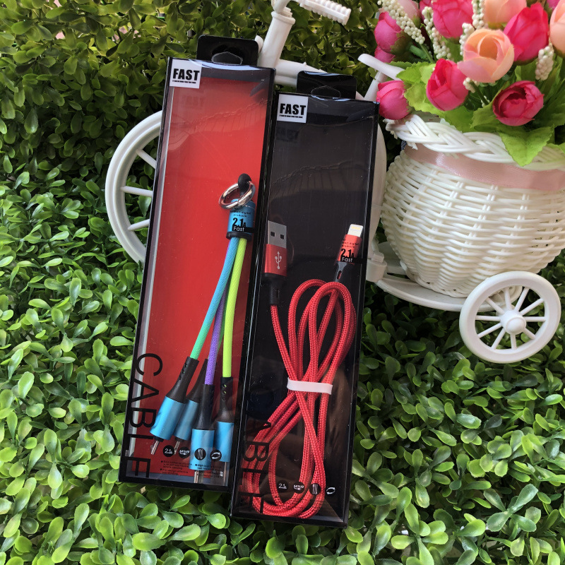 ナイロン編み込み 1対3データケーブル 急速充電5A 3in1充電ケーブル 1.2メートル 企業ギフト ロゴ印刷対応