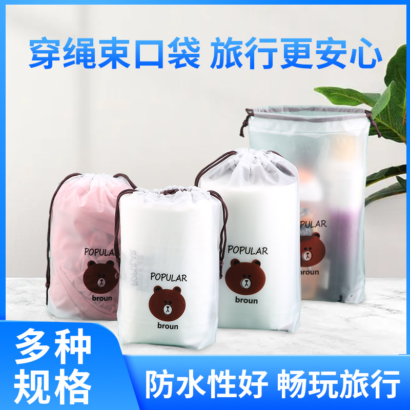 クマ巾着袋つや消し PE 収納袋旅行収納フェイスタオル化粧綿包装袋カスタムロゴ
