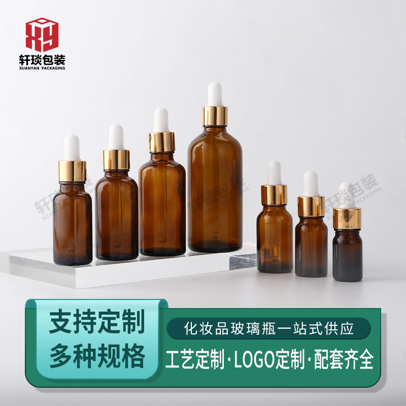 スポット茶色エッセンシャルオイルボトル茶色スポイトガラスボトル避光化粧品分注ボトルエッセンスローションスプレーボトル