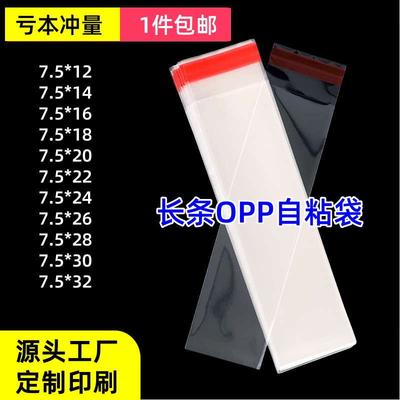 卸売OPP粘着袋、細長い透明プラスチック包装袋、テープ付きビニール袋、長くて直線的な袋、アクセサリー