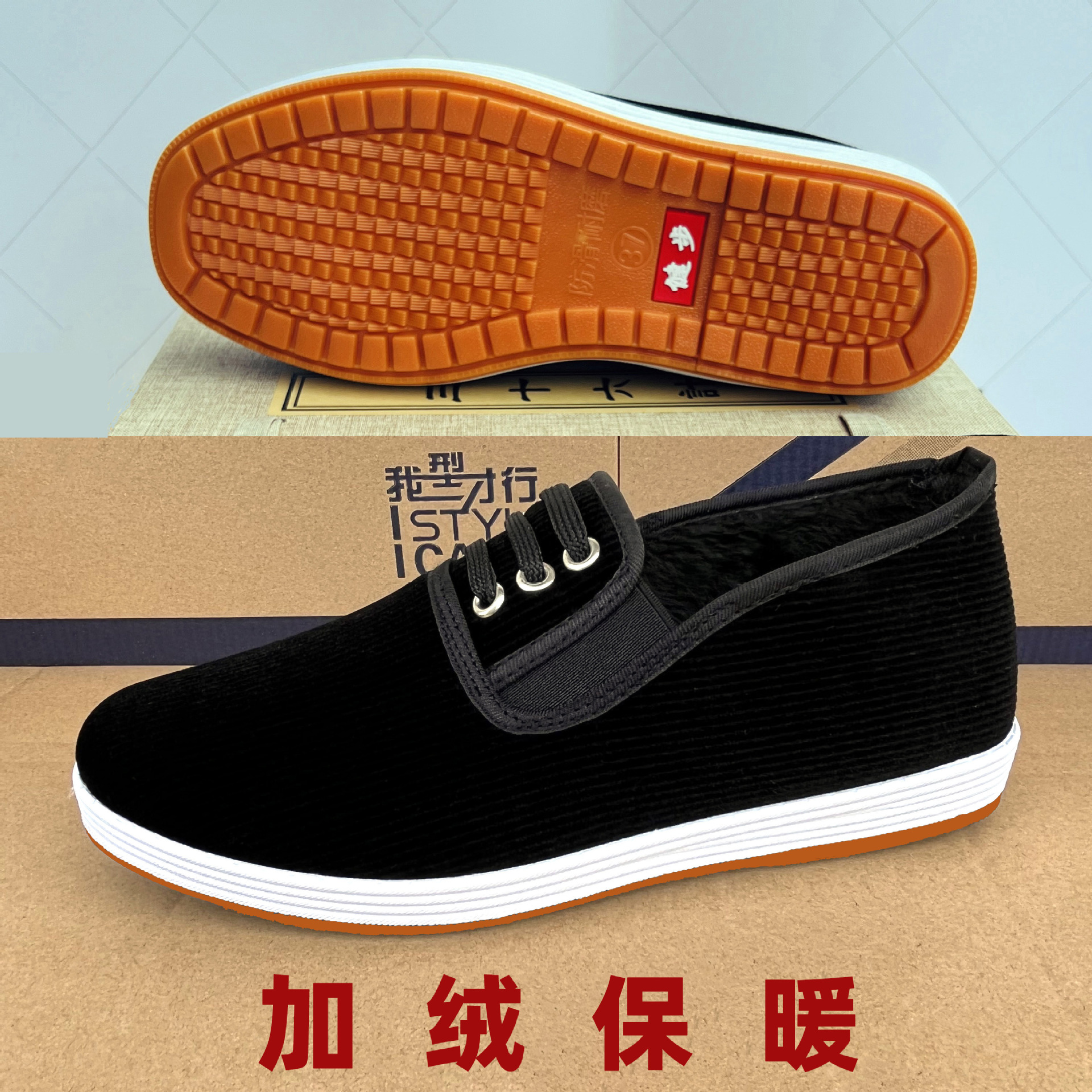 厚手の暖かいメンズ綿靴、老北京布靴、綿入り牛筋底布靴、メンズ黒布靴、タイヤ底メンズシングルシューズ