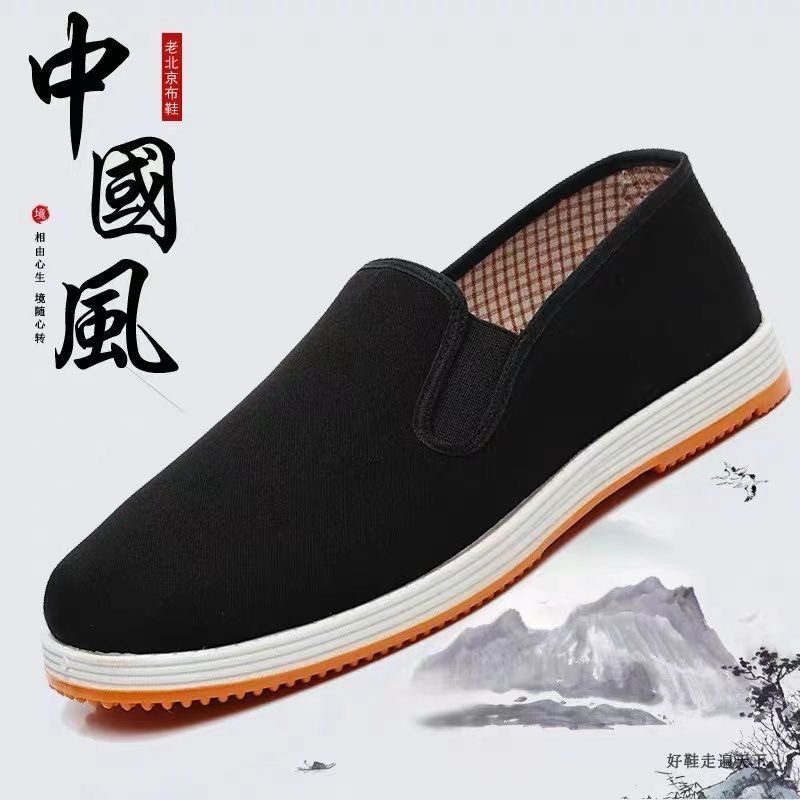 靴メンズ古い北京黒布靴スリッポンメンズ布靴ソフトソール快適な中高年作業靴卸売軽量
