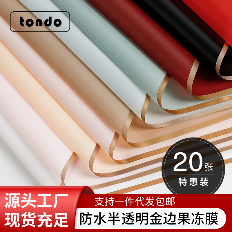 唐徳花包装金辺ゼリー膜防水半透明霧面紙花束包装材料卸売り