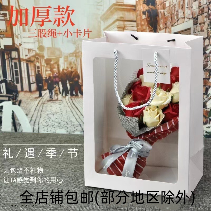 母の日の透明な窓開け手提げ袋卸売りバレンタインデー520ショーウインドーの新鮮な花束手提げ袋包装袋