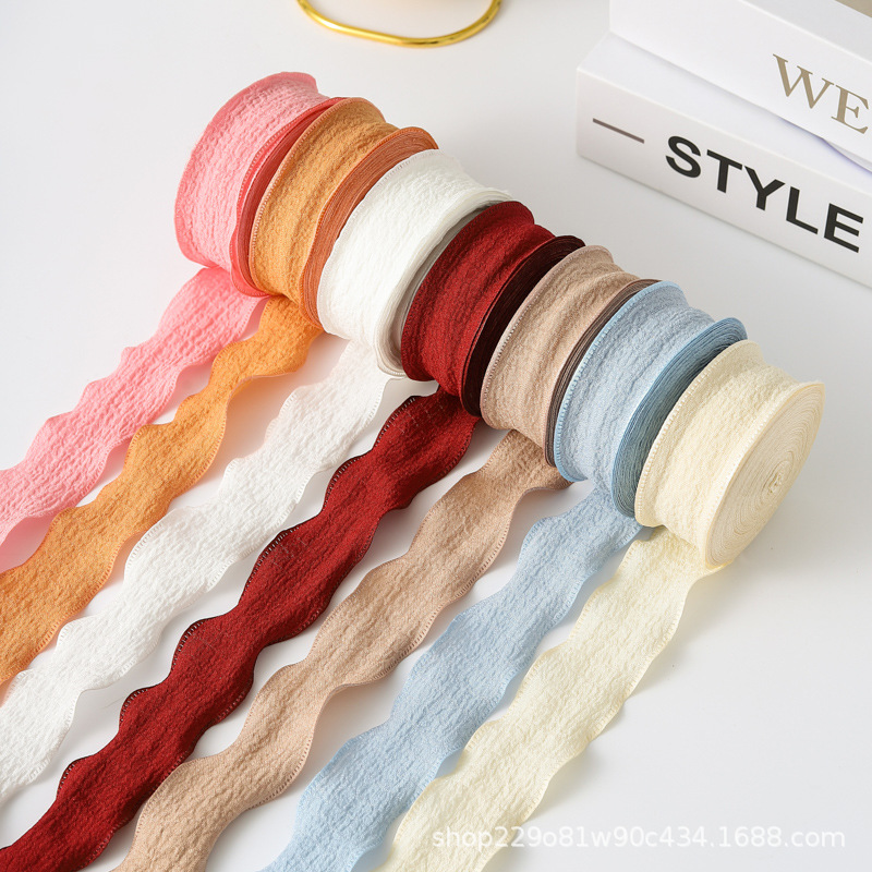 ケーキ、フラワーアート、リボン、蝶結び、ヘアアクセサリー素材、ウェーブロール包装、フィッシュテールガーゼ、サテン、流れるようなリボン、卸売