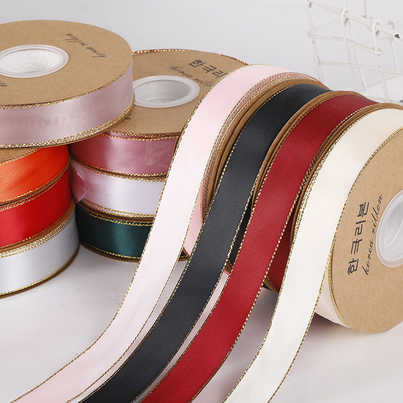 両面の金の縁のポリエステルは花のケーキの花束の贈り物のギフトの箱の包装のリボンの卸売りのリボンを持ちます。
