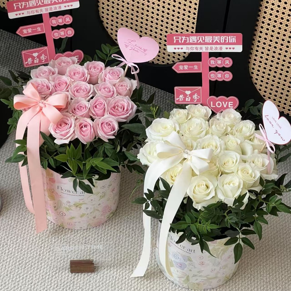 Flower Sweetheart 小さな丸い樽型フラワーアレンジメントボックス フラワーアレンジメントギフト 空箱 包装材料 教師の日ギフトボックス