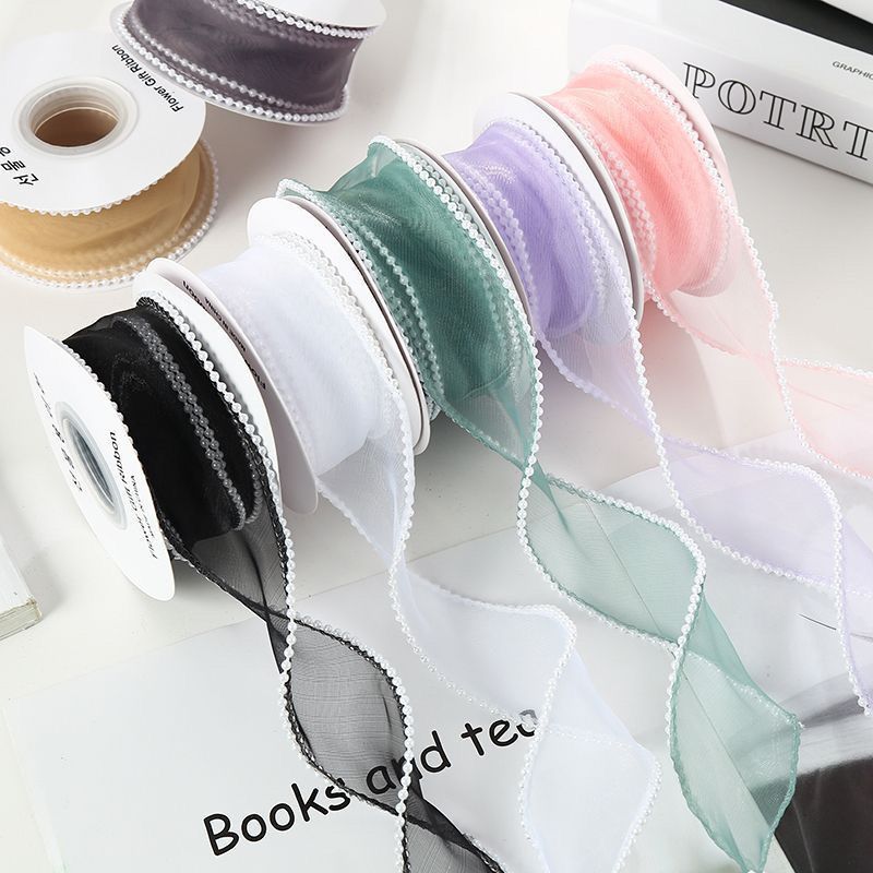 フラワーパーティーメーカー卸売新製品ソリッドカラーパールリムガーゼフラワー包装メッシュフラワーショップギフト装飾ガーゼ