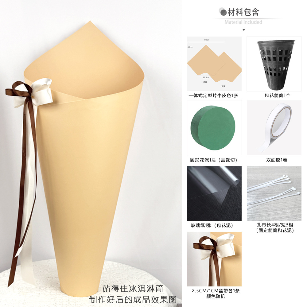 Huayan Materials オールインワン アイスクリーム タンブラー スタンドアップ シェイプピース DIY ブーケ素材パッケージ 花の包装 フラワーバケツ