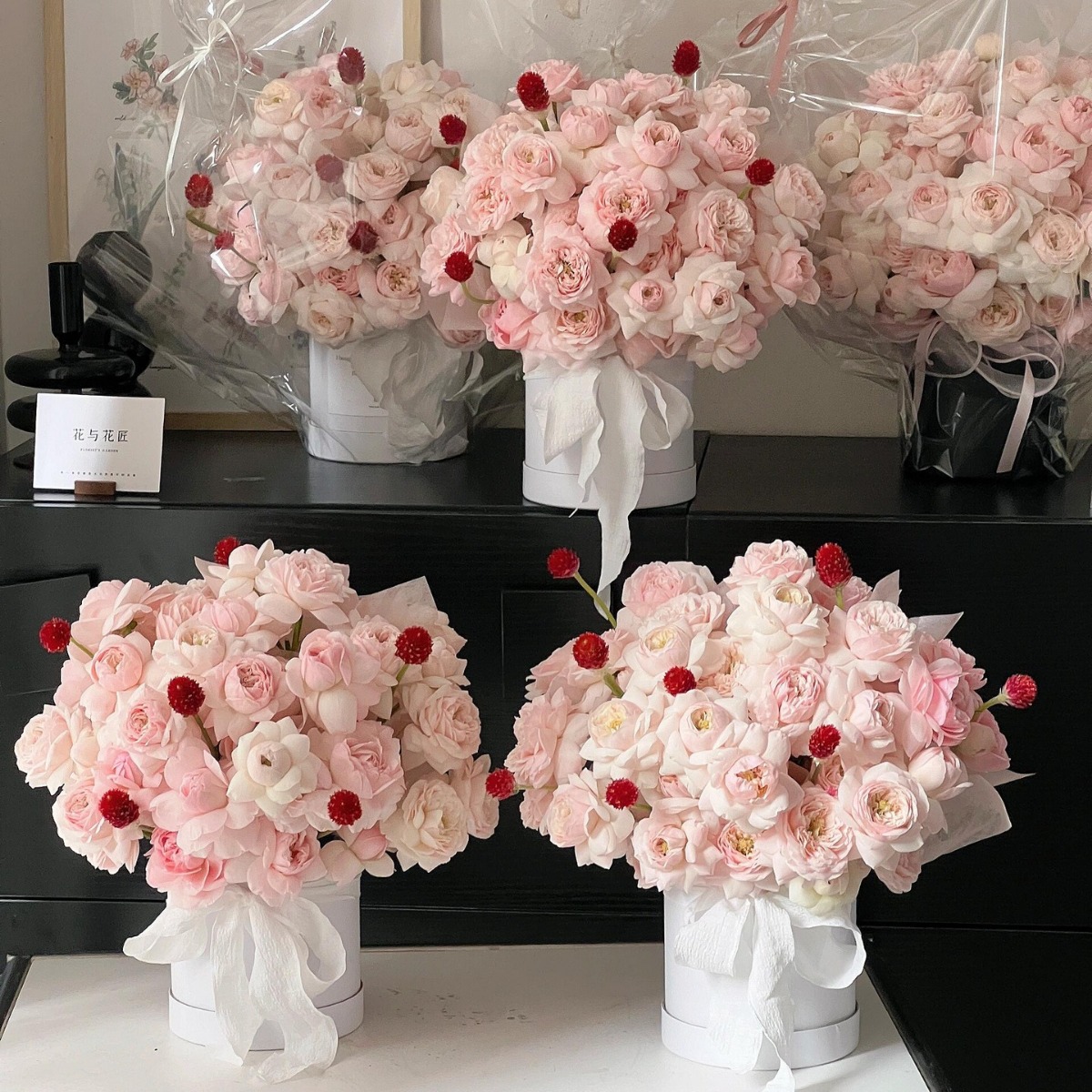 ローランドジェーン愛は国境を越えて卸売りした花の包装紙の花束を抱きしめる
