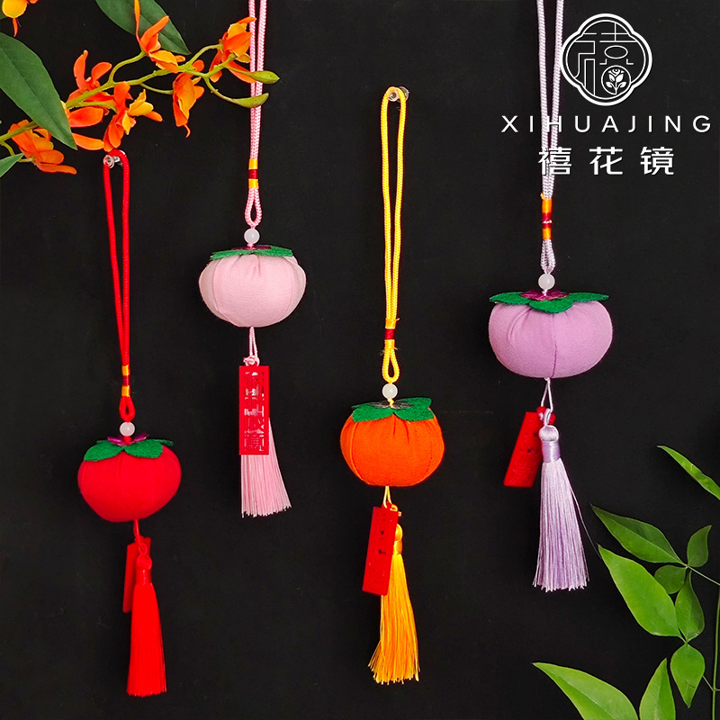 新作柿のペンダント2025新年のペンダント新春柿如意装飾年夜花シミュレーション花香包香嚢