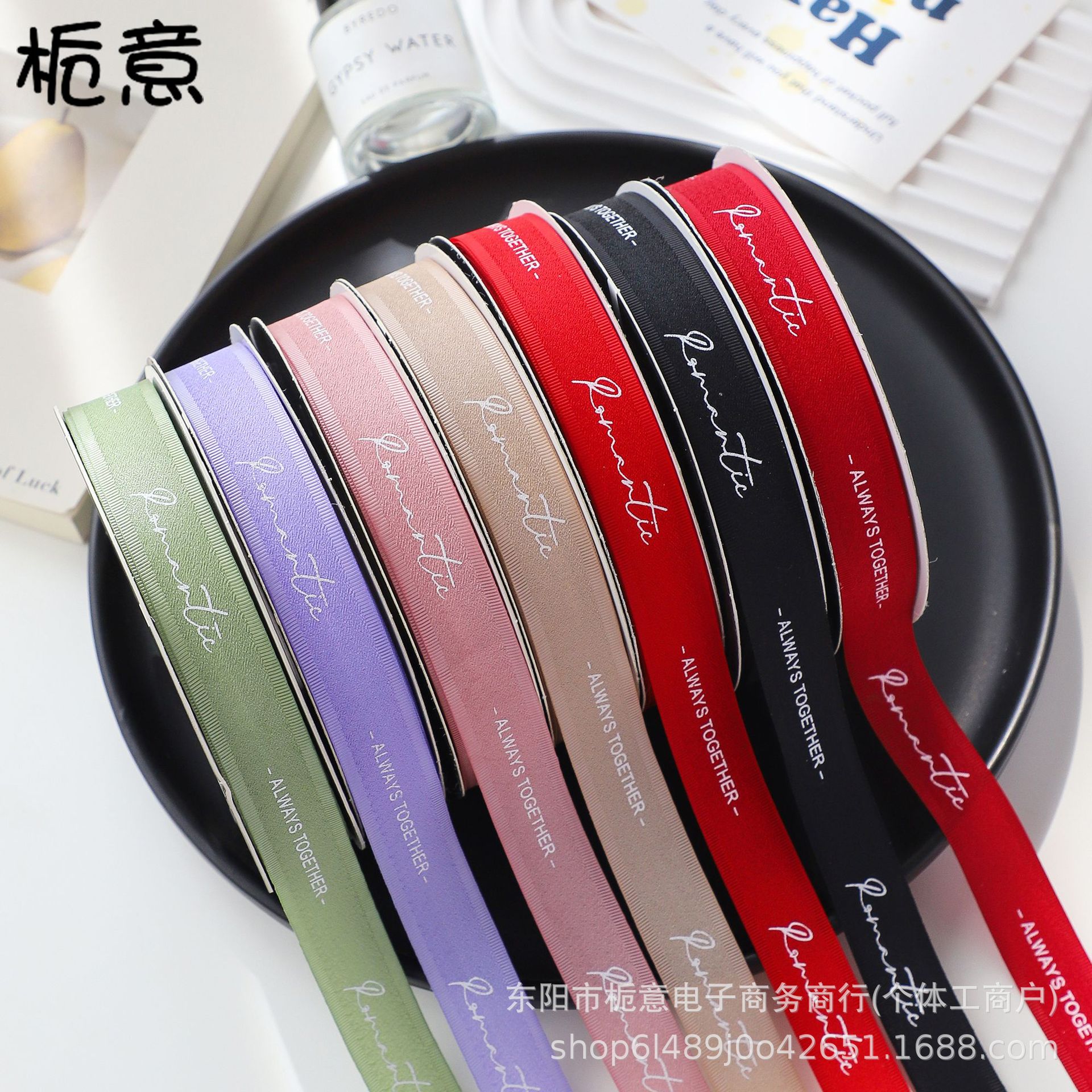 英文丝带包装材料鲜花包装烫金2.0螺纹织带礼品礼盒厂家批发