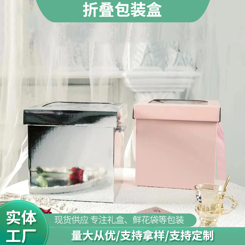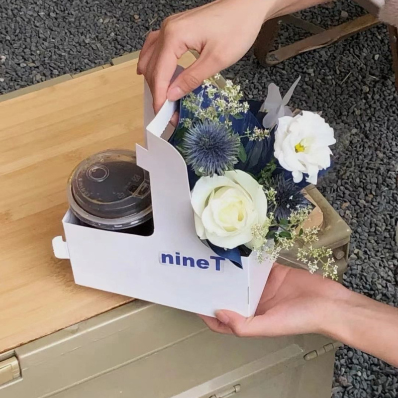 手提げ花箱牛革色コーヒーミルクティー花束生け花箱花包装箱折り畳みネットレッド飲料包装袋