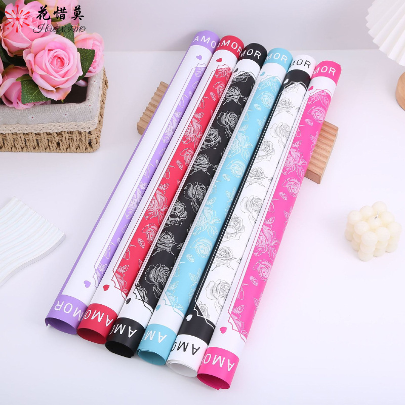 フレームマットフィルム白黒貴族包装紙新商品霧面紙花芸花束防水韓素包装材料
