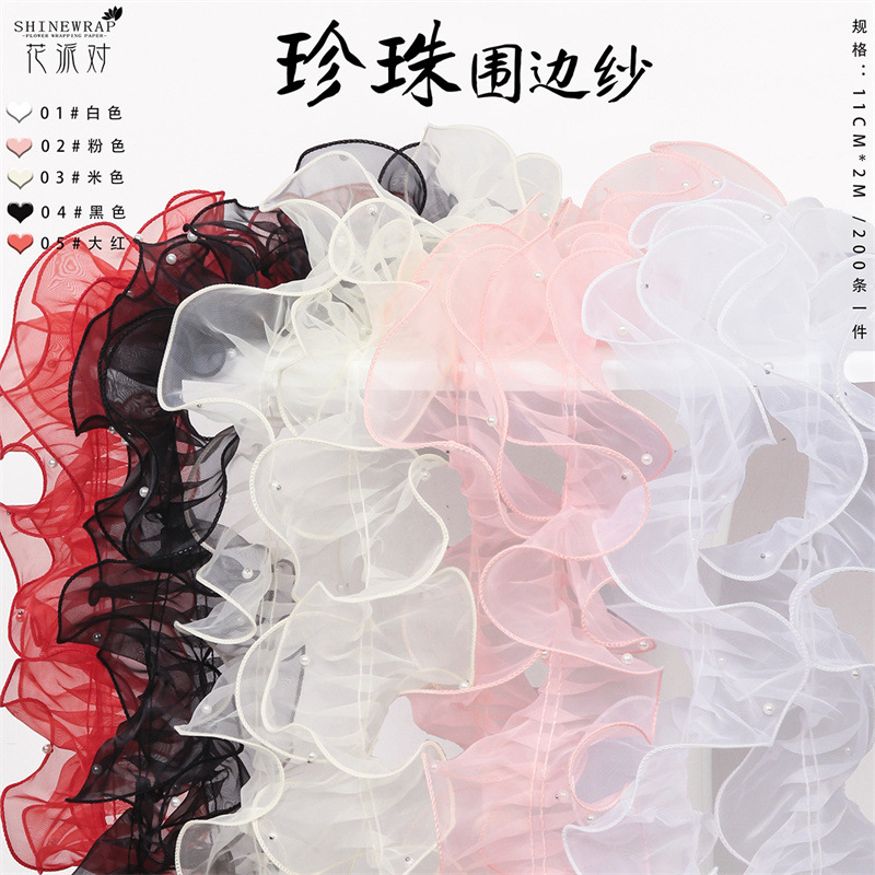 フラワーパーティーメーカー卸売新製品ソリッドカラーパールリムガーゼフラワー包装メッシュフラワーショップギフト装飾ガーゼ
