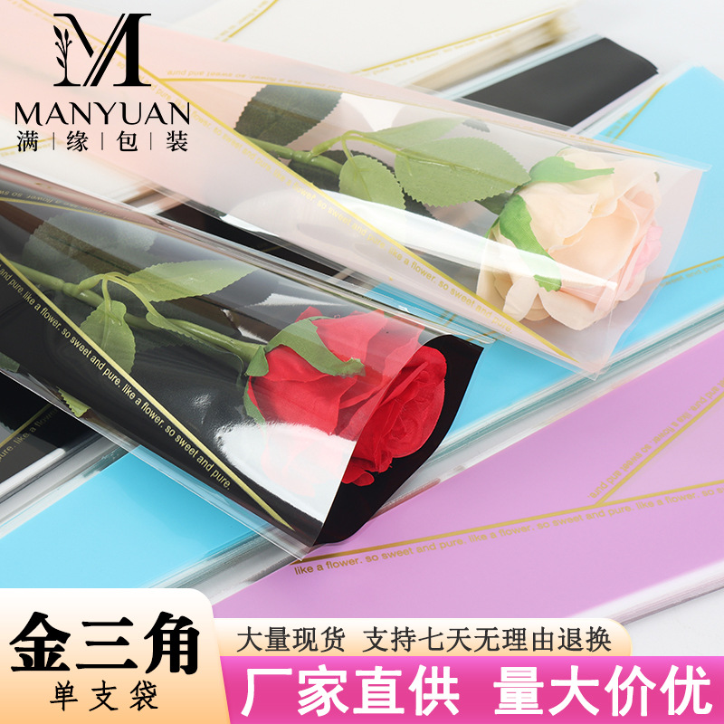 520 シングルブーケ包装袋 OPP プラスチック防水シングルローズバッグ厚い 4 シルクバレンタインデー 50 ピース/パック卸売