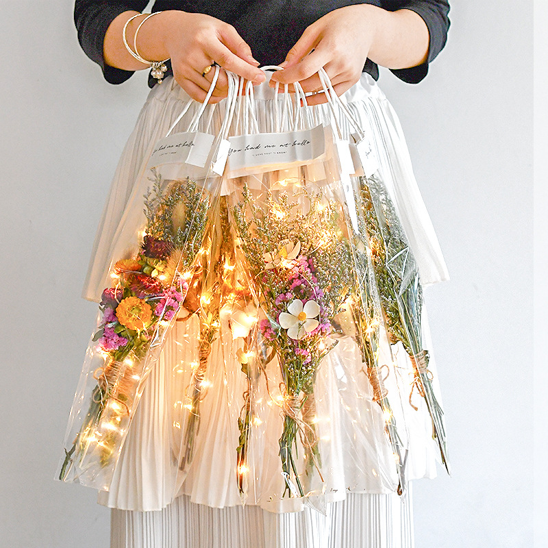 Insネット赤手提げ生花袋透明pvc花芸シンプルバレンタインデープレゼント包装袋バッグ花束材料