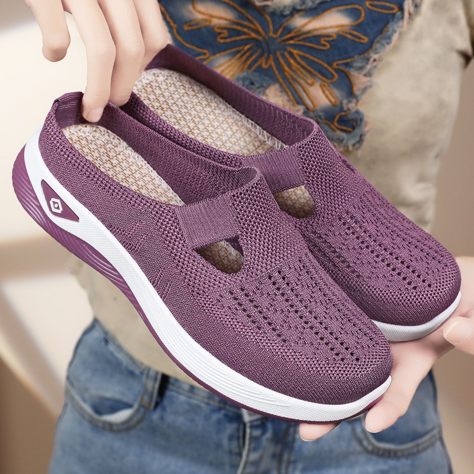 女性用ウォーキングシューズ、マジックテープ付き、中高年向け、通気性のある中空デザイン、軽量メッシュシューズ、カジュアルで多用途