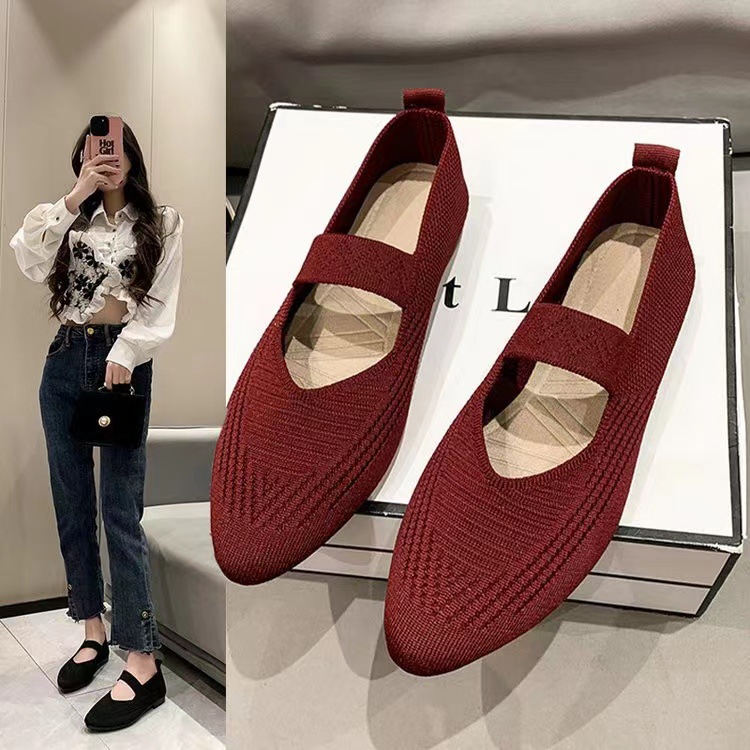 カジュアルな工装の女性靴2024秋の新型の飛織は怠け者の靴の平底の快適な中高年のお母さんの靴を踏んでいます。