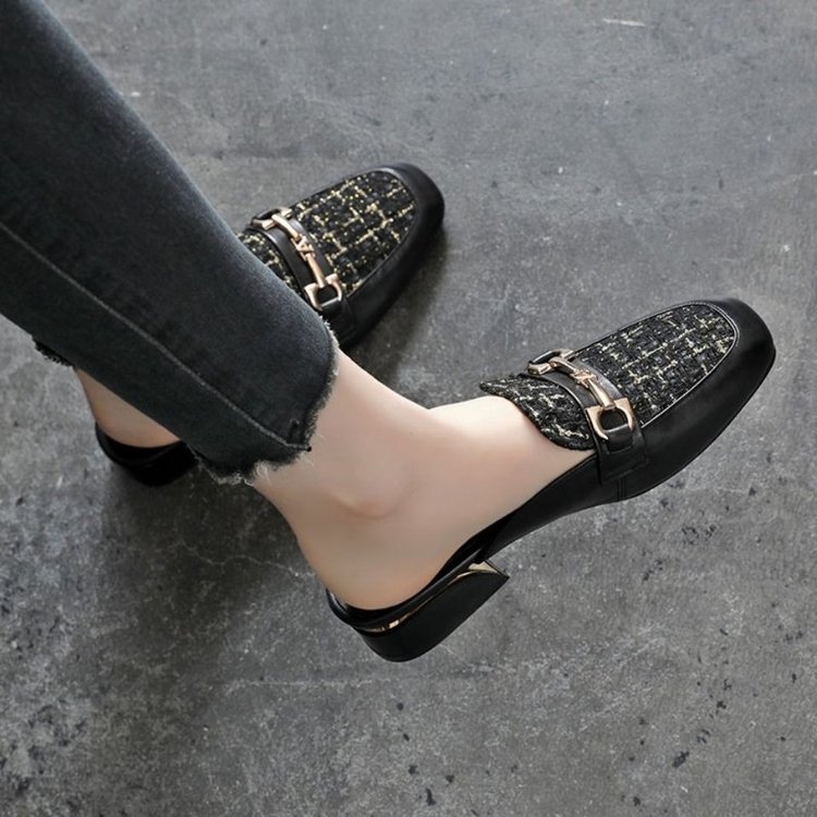 2024年の新型夏ファッション低ヒール怠け者靴英倫風網紅単靴の外にサンダルを履いています。