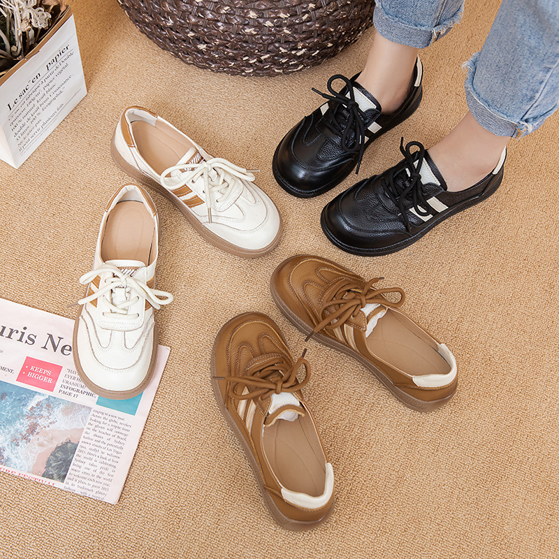 本革白靴女性のための春と秋 2023 新しい牛腱底婦人靴ソフトソール革靴韓国スタイルのシングルシューズレトロカジュアルシューズ