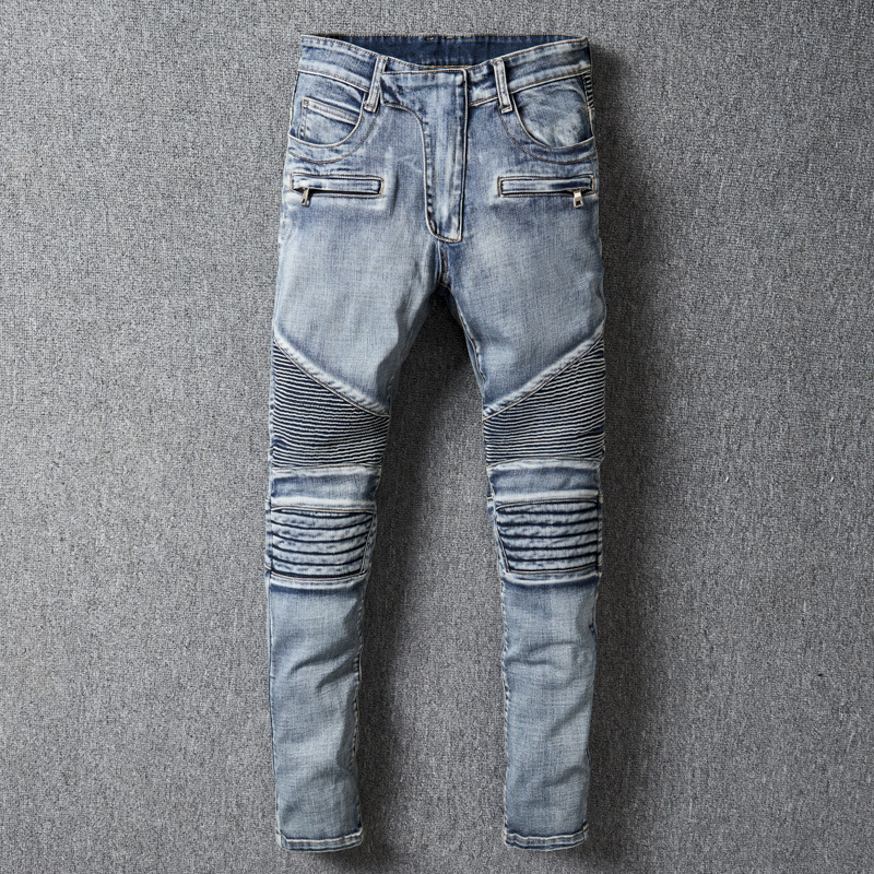 オーダーメイドステッチ機関車のジッパーのポケットの金0デニムの長ズボンの薄い青の加工の改金のブランドの印刷図の200件から決めます。