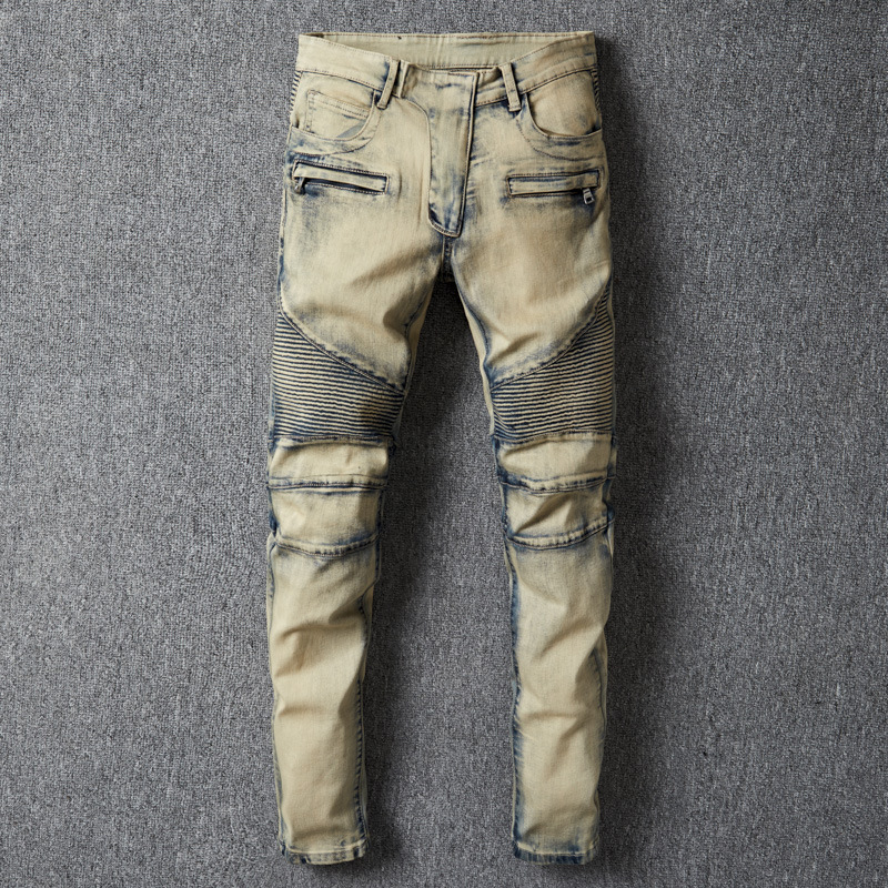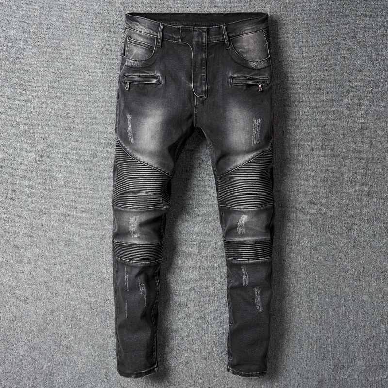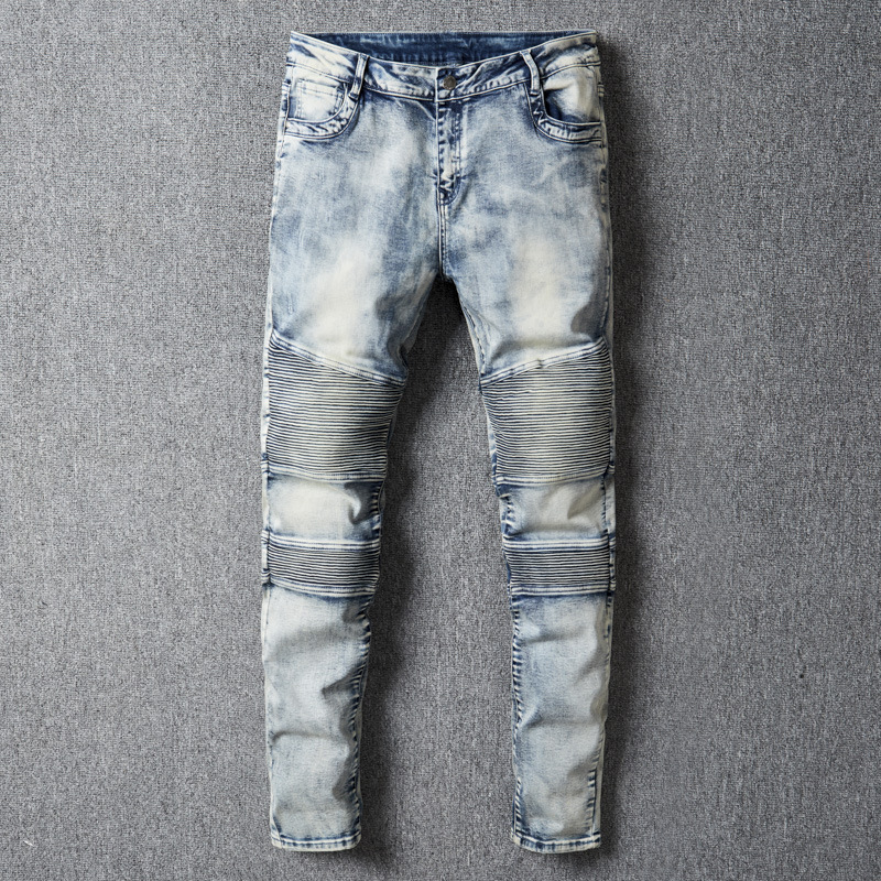 男性機関車をカスタマイズしてデニムの長ズボンを加工します。